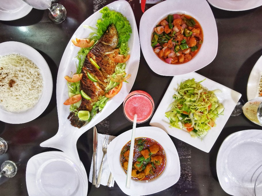 We had some Chinese Fried Rice which is appeared slightly odd as they used Basmathi rice to prepare it, Baked Fish, Mixed Vegetables and chicken masala…