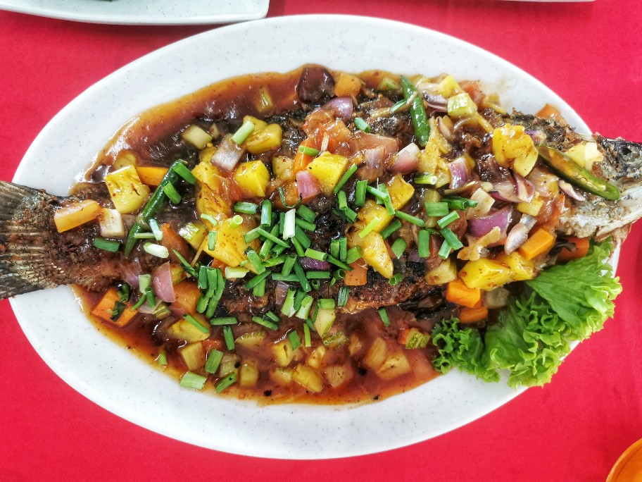 Loved it here, especially the ikan tiga rasa (sea bass fried and prepared with sweet, sour and spicy gravy), omelette and the calamari salted egg… And we polished our food off in minutes…