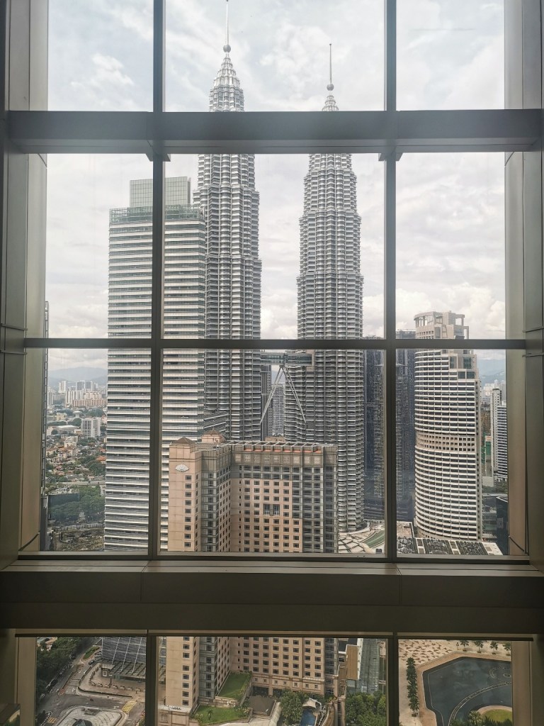 The elevators quickly whisk you up to a breathtaking lobby that pits you eye to eye with the Petronas Towers….