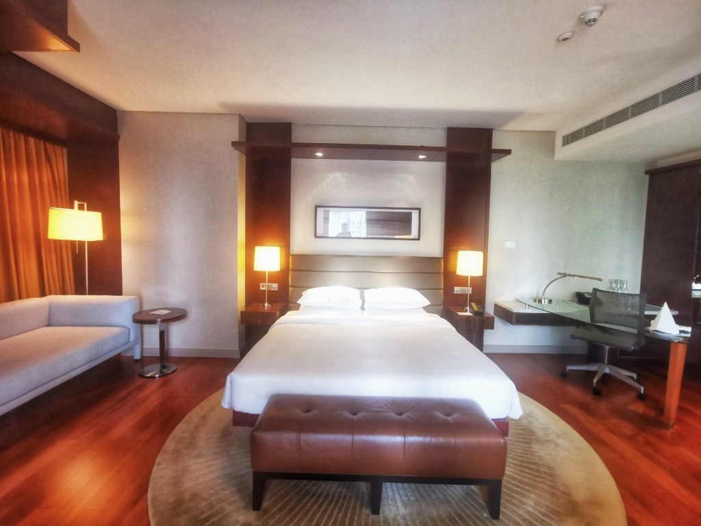 As to be expected, Grand Hyatt Kuala Lumpur rooms are filled with the luxury and comfort you would expect to find in a 5-star hotel… This includes beautiful modern furnishings, floor to ceiling windows in each room, and wooden parquet flooring or marble flooring (in the bathroom)