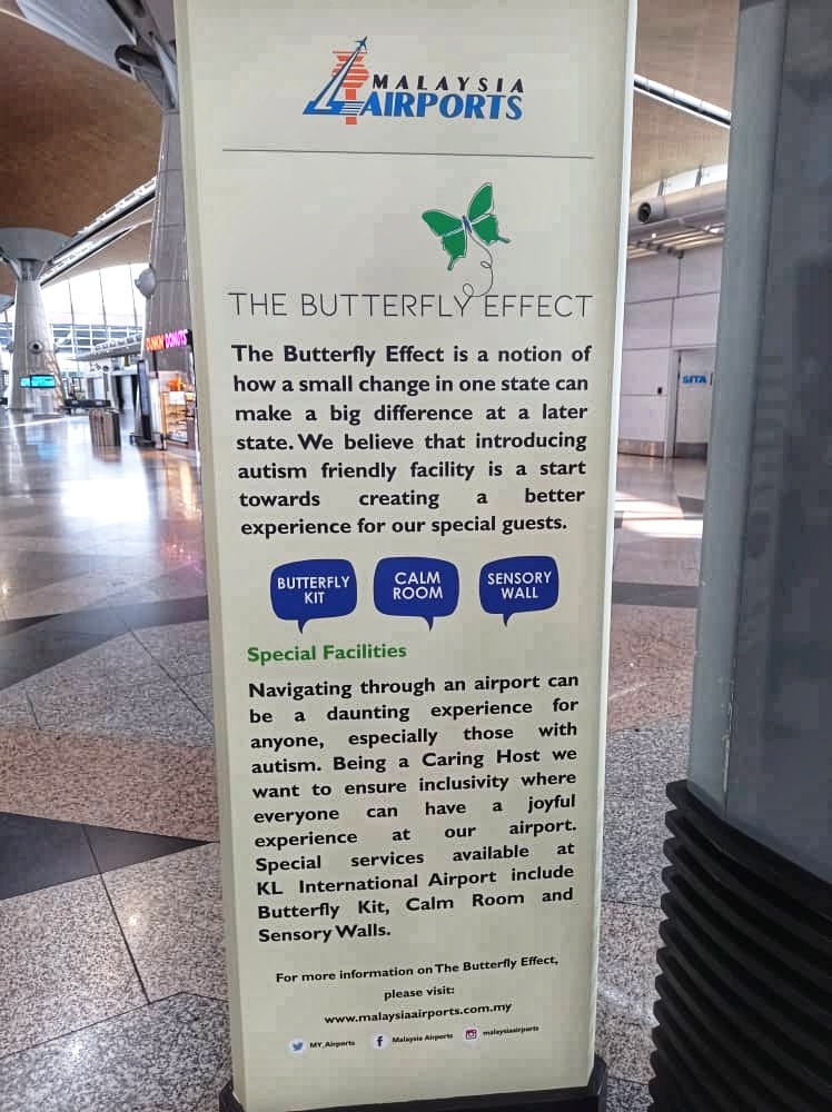 Malaysia Airports believes that similar to the Butterfly Effect theory where a small change in one state can result in a big difference at a later state, the introduction of these facilities is a start towards creating a memorable and less stressful journey for these special passengers…