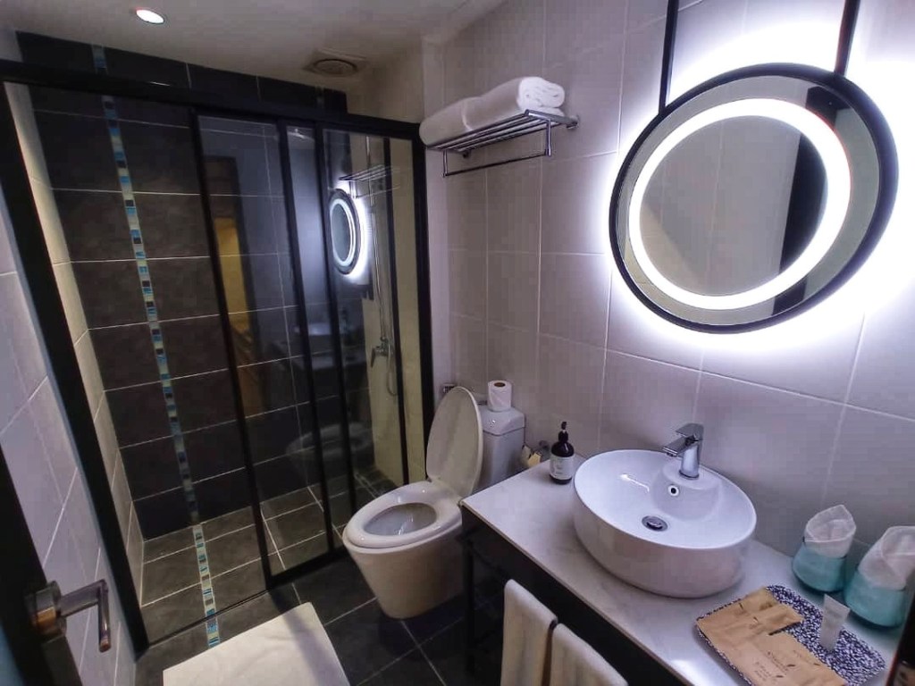 There is a large work desk with ergonomic chair, minibar, coffee, tea and milo making facilities, iron with ironing board, hair dryer, 40-inch LED flat screen TV with premium channels, in-room safe, minibar and those irresistible luxurious pillow top beds – I swear I can spend the whole day in bed just lazing around cos those beds and pillows are just sooo cosy…