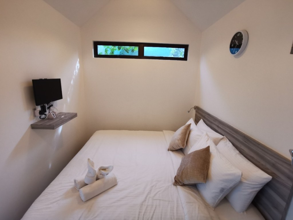 The room is hmmmm.. a little cramped at 120sq ft since it already has a huge king sized bed and a tv which only works on Chromecast… This means you can mirror and watch whatever you want on your phone, even Netflix, Viu or YouTube etc… There is free WiFi butttt it is a little slow….