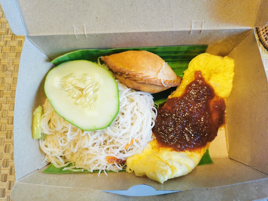 A simple breakfast is served at the lobby or at your cabana consisting of packed nasi lemak, curry puff, watermelon and drink (on my first day)….
