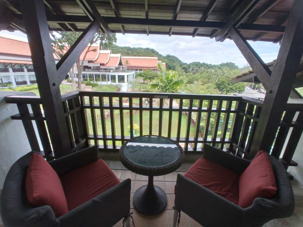 One small one which opened from the bedroom and a huge spacious balcony with two sun loungers and a table and seats… There is space for a small dipping pool or jacuzzi but none here… Hehehe…