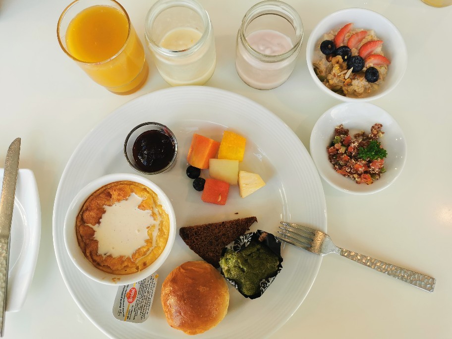 Breakfast is a superb quality breakfast with a reasonably generous spread.. has almond milk, smoked salmon, smoked duck, smoked chicken, fresh smoothies etc served at Seasonal Taste…