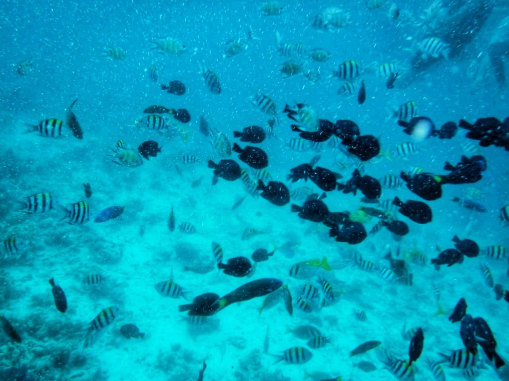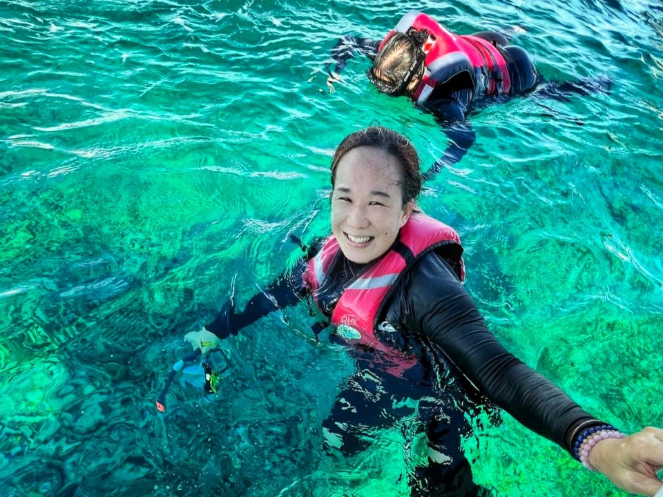 There were many fishes here, especially the Sergeant major fishes and blue starfishes… However, those snorkeling here must be cautious as there are also jellyfishes… A couple of ladies got slightly stung by some jellyfishes…
