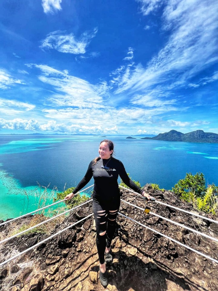 The views of that lagoon from Bohey Dulang’s highest point are what draws most people to the island. From the 353m-high viewpoint, visitors are greeted by an almost surreal panorama of the lagoon’s crystal-clear waters and the coral reefs that lie beneath. Hiking and climbing to the top is roughly 45 minutes – following the 700m hiking trail which winds around the island and leads you to the peak….