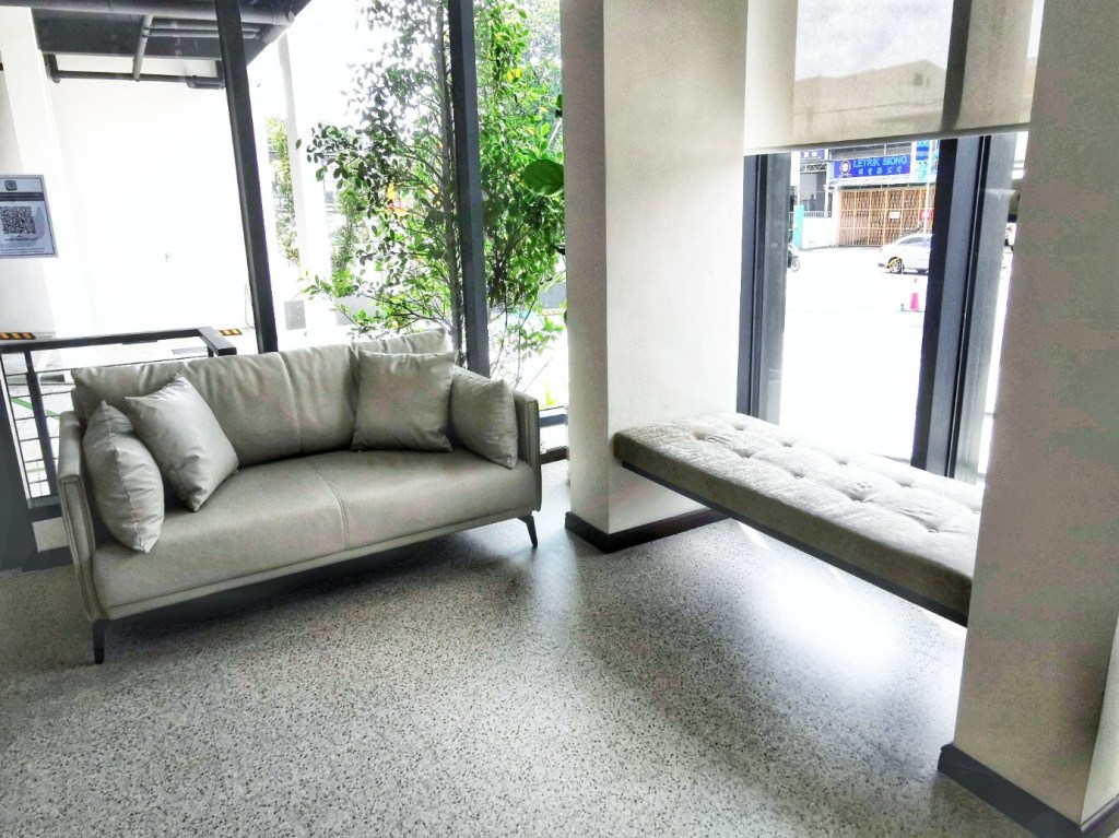 Just by the corner from the reception, you can find sofas and even a charging bar table with high stools to chill out or to browse through the brochures of Penang for some ideas as where to go etc.. , while waiting for your friend, or to charge your phone or to wait for your e-hailing car…