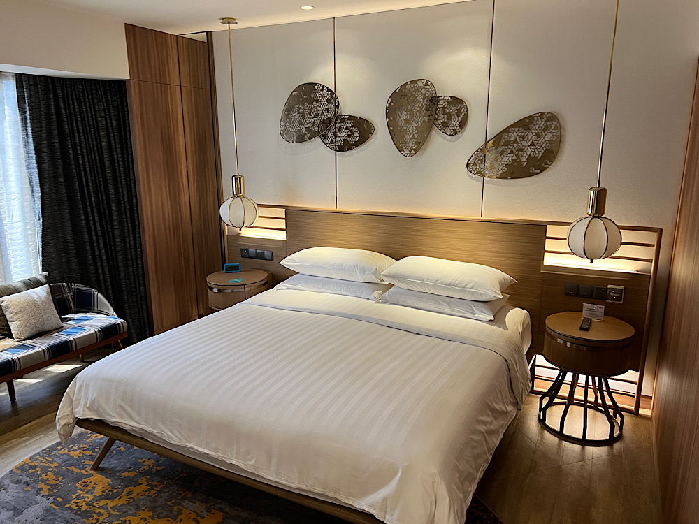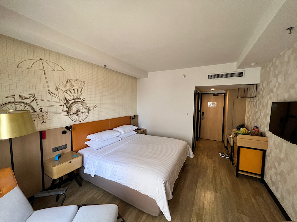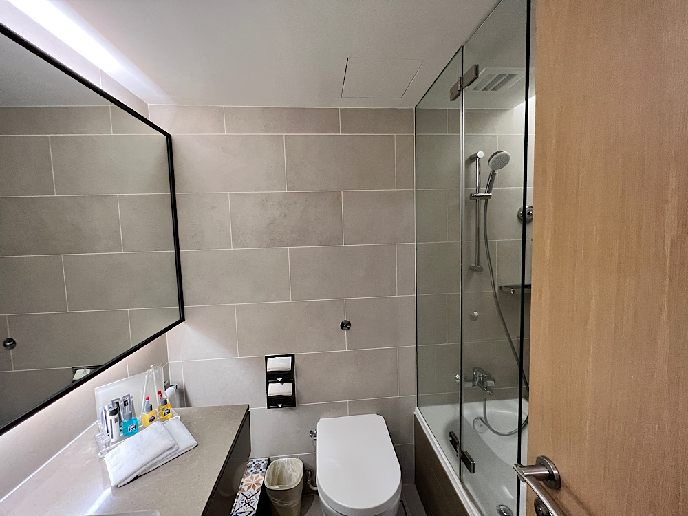 My room was beautifully contemporary styled with light wood floors and a colour palette of warm tones, and has a working area, universal sockets, USB charging outlets and came with a bath tub in the bathroom..