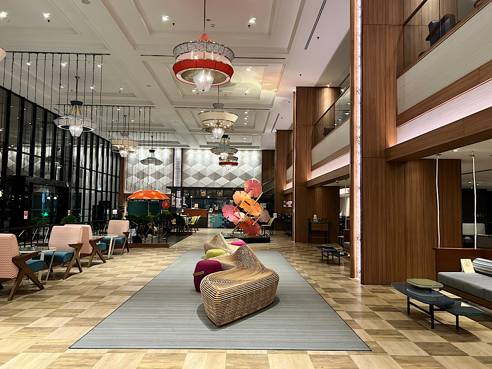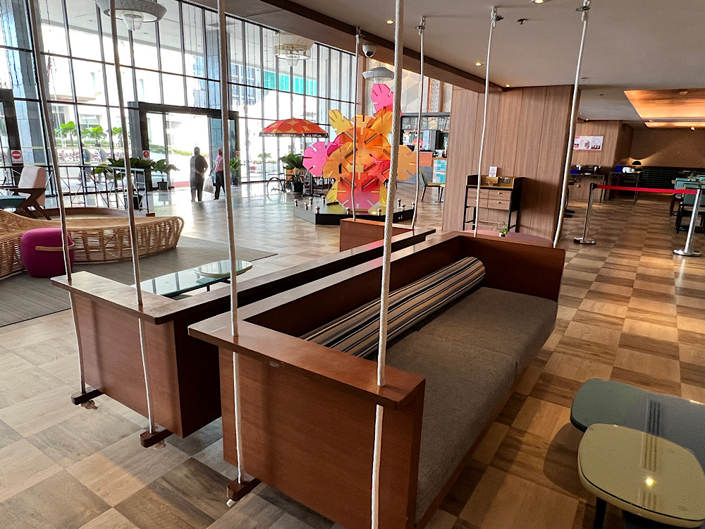 I personally loved the quirky combination of contemporary furniture pieces and hanging rattan sofas in the Lobby area…