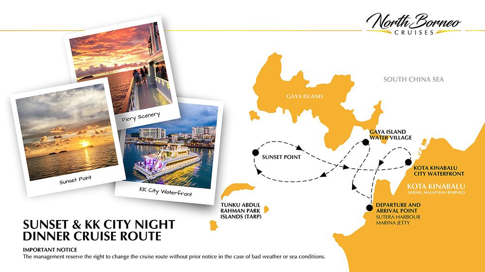 Then you can get all aboard on a magical evening cruise that will just amaze you…. For a couple of hours, imagine yourself a girlboss or a tycoon on your yacht with some people sailing along the sultry sun-tinged South China Sea, cruising pass the islands and water villages that dot Sabah’s west coast…..