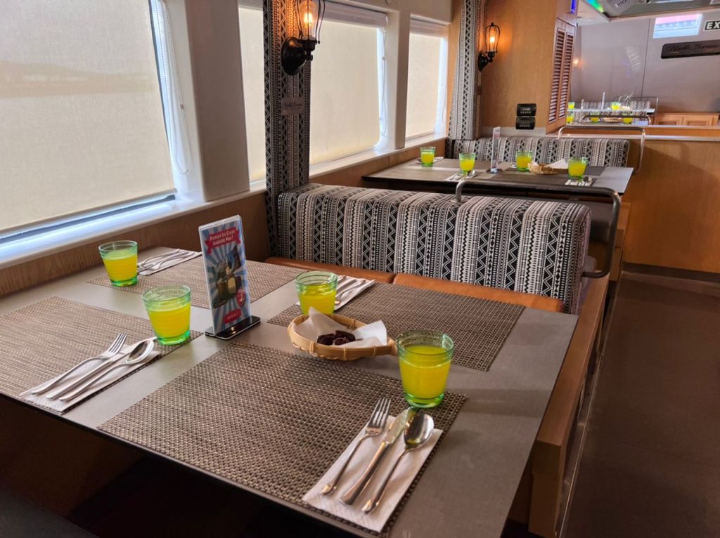 You are free to wander around Luna and take in the sights, sounds and briny evening air… you get mesmerising island and ocean views, the warmth of the setting sun and the breeze playing with your hair while on the upper-deck while a live band serenades the ethnic themed air-conditioned restaurant below with acoustic favorites.