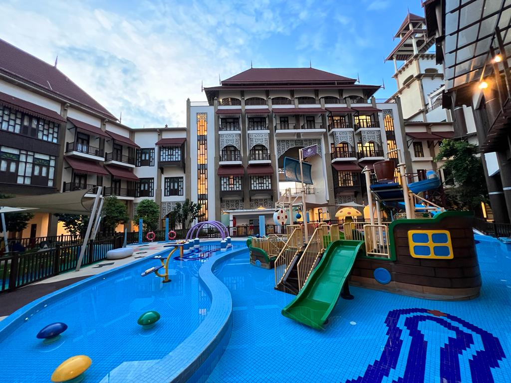 We headed to our room -a King Family Room which was super spacious and very comfortable… 61 square metres in size and it came with super cosy Sweet Dreams beds, sofa bed, 50-inch HDTV, mini fridge and work desk and had two balconies, one that opened to the children’s splash pool area…
