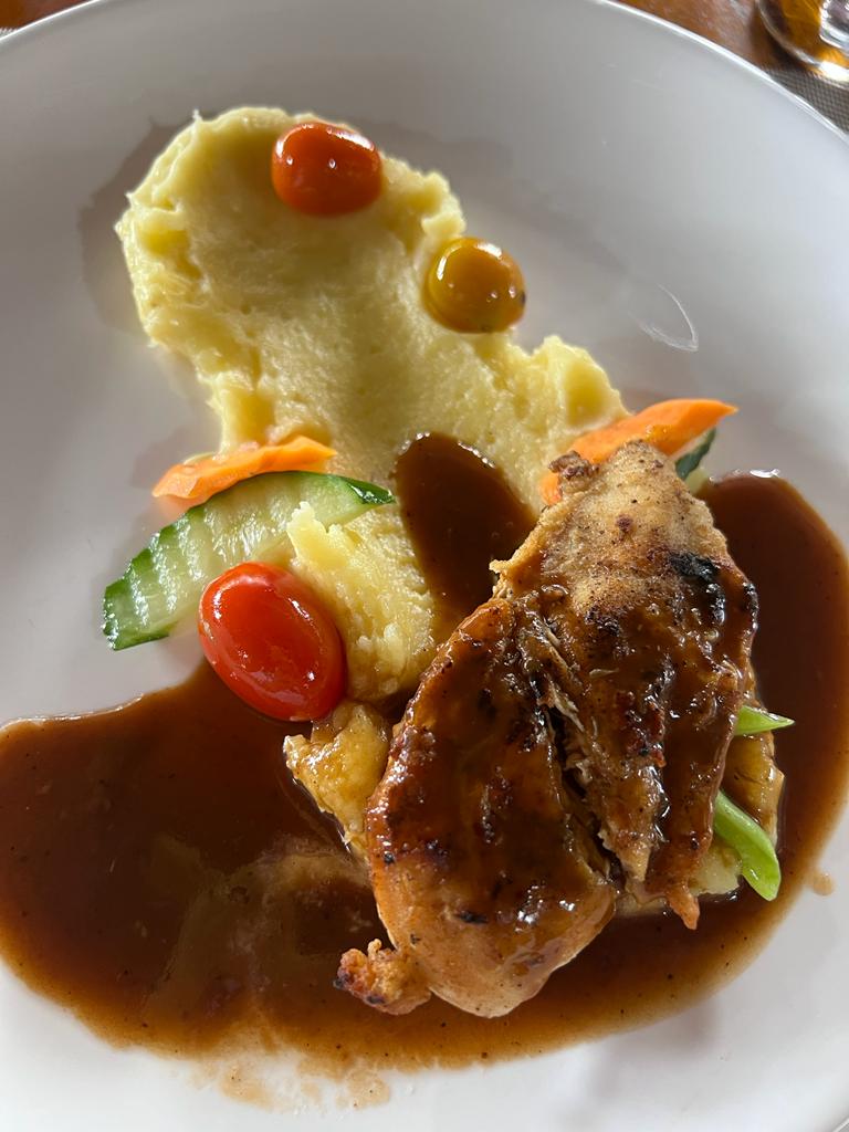 we ordered the Cream of Wild Mushroom Soup made from Kinabalu wild Mushroom served with homemade croutons; Grill Chicken breast served with mash potato, buttered seasonal vegetables & a choice of black pepper sauce or mushroom sauce and