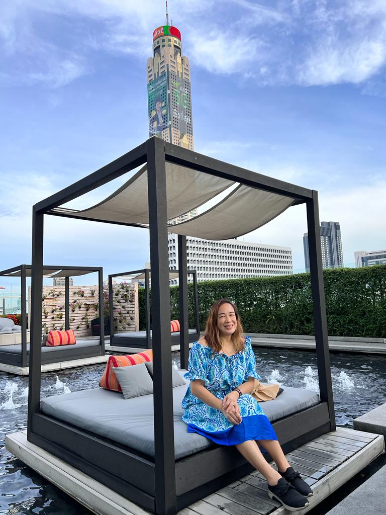 There is no swimming pool in Centara Watergate Pavillion Hotel Bangkok because of building restrictions, however the hotel team created a space called Moom Sabai where their guests can just lie down to chill and relax with the sight and sounds of water. You can even order cocktails from Infuze bar located adjacent to the reception.