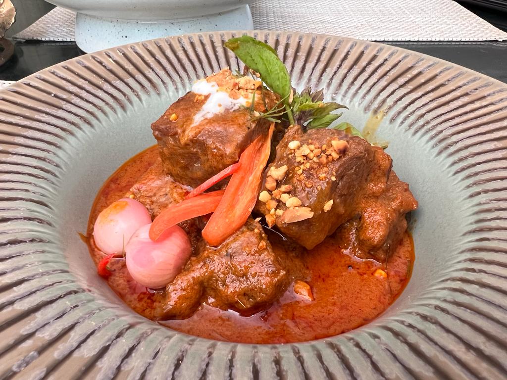 The fourth dish which was one of our main dishes was Pa- Nang Neua Gam Wua Pak Dong (THB 620) which is actually slow cooked beef cheek dried curry served with vegetable pickles… this was really delicious eaten with the Thai Jasmine rice, the beef was tender and easy to chew…