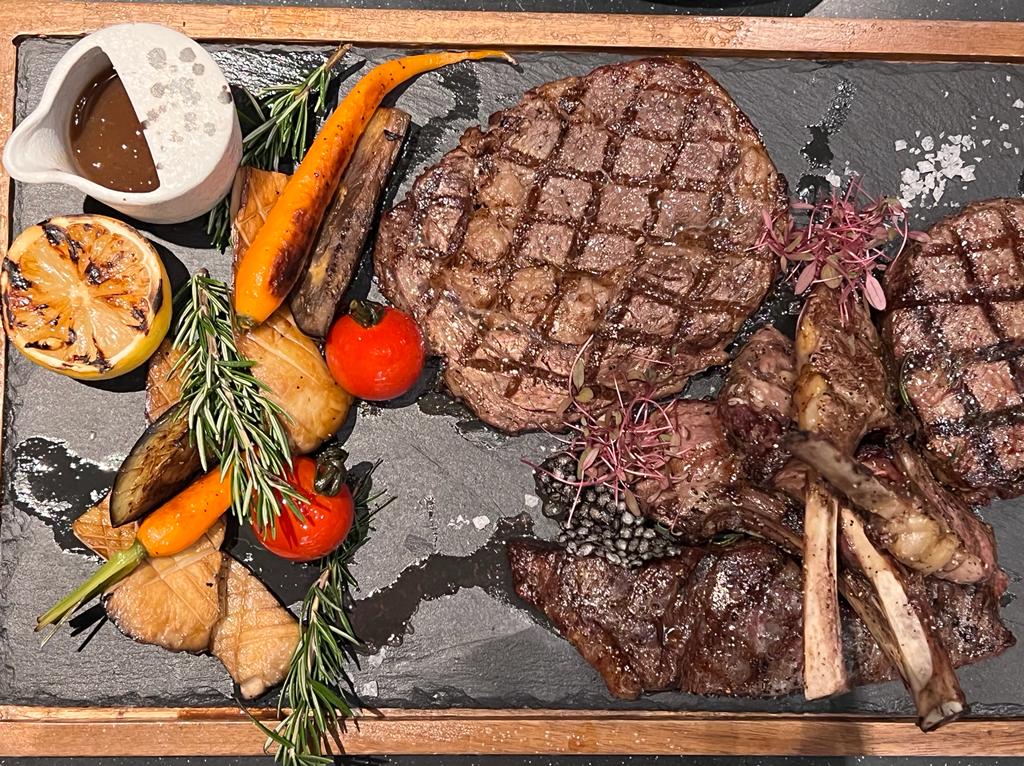 Then we had the Mixed grilled Australian beef and meat platter (THB 2750) which came with about 150gm of Angus tenderloin, 250gm of lamb rack, 200gm of wagyu rib-eye, 150gm of wagyu striploin and 200gm Angus flank steak… the seasoning was superb and with full flavours and the meat? Tender and perfect…..