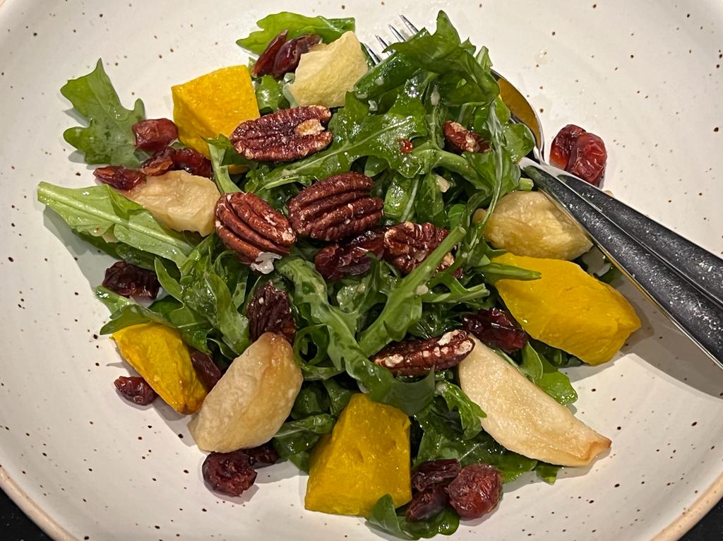 We started our dinner with some hearty-roasted butternut squash, wild rocket & apple salad (THB 420)that came with dried cranberries, cinnamon, pecan, maple & ginger dressing… the taste? Sweet and sour and fruity!!!! Delicious!!!