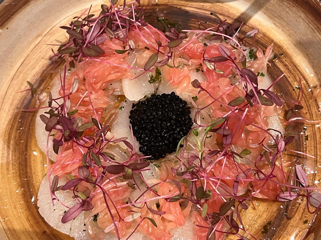 Then the next dish was the Hokkaido scallop ceviche (THB 680) served with grapefruit, microgreens and baerii caviar… this was really a refreshing dish, one I could not get enough of!!!