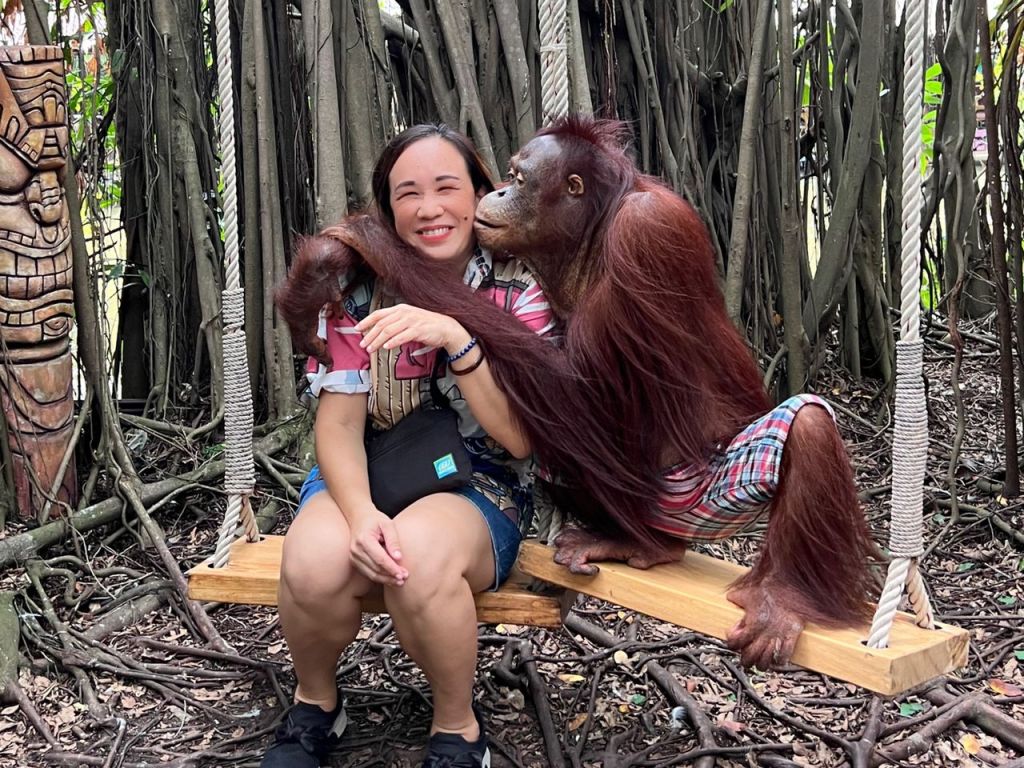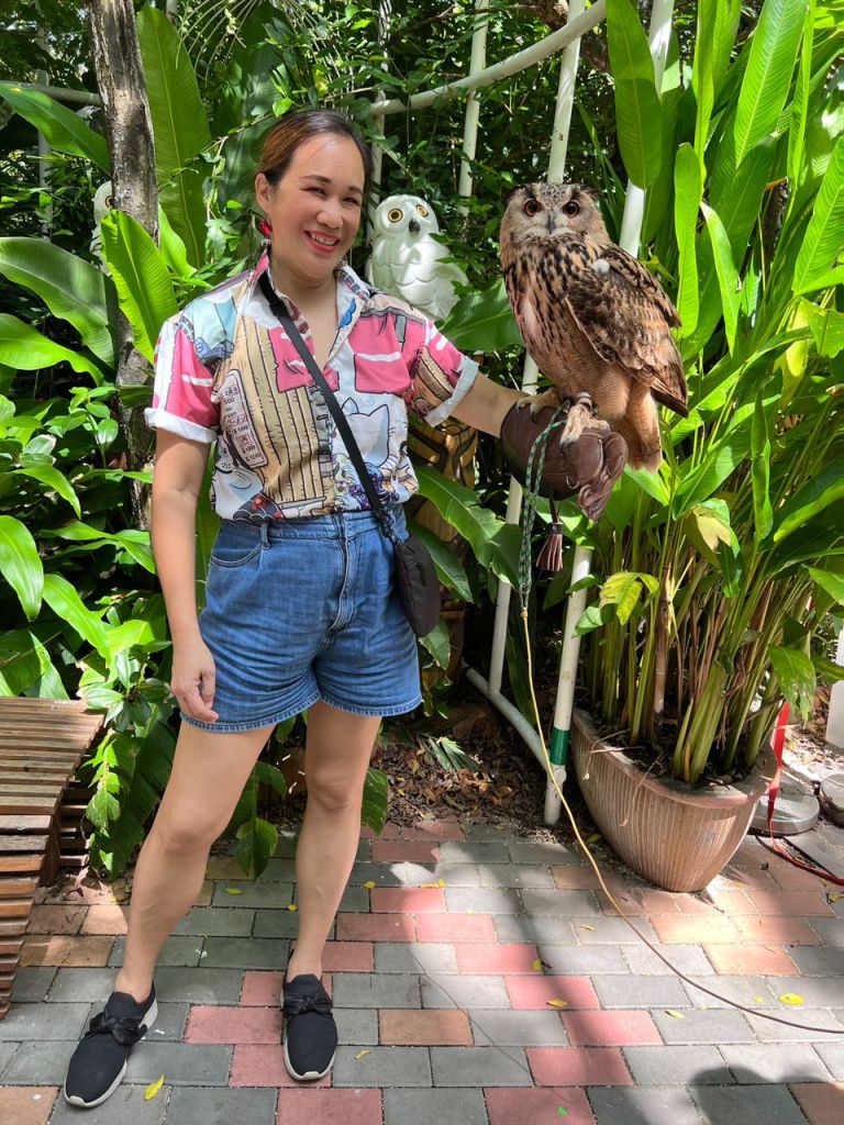 Another place that you should not miss is the Open Air Studio…. the place where you can choose to take photos with some of the animal super stars such as the orangutans, the noisy parrots, the sleepy owls or even the majestic eagles… There are of course additional charges for photos (THB 200 per person per animal)