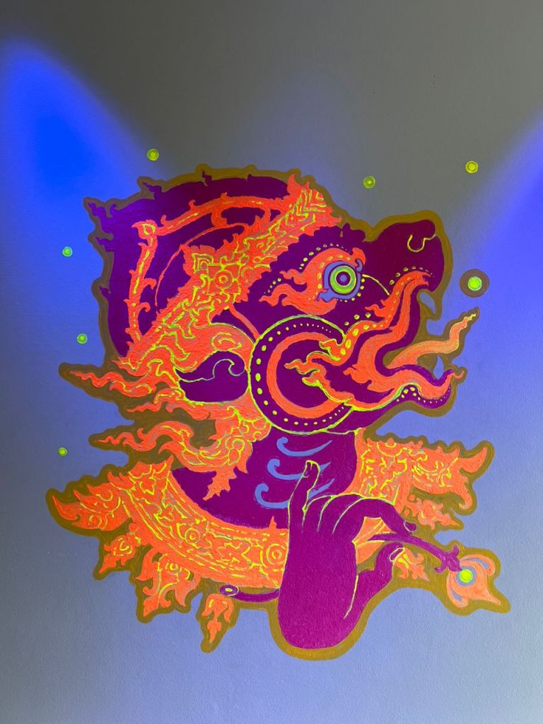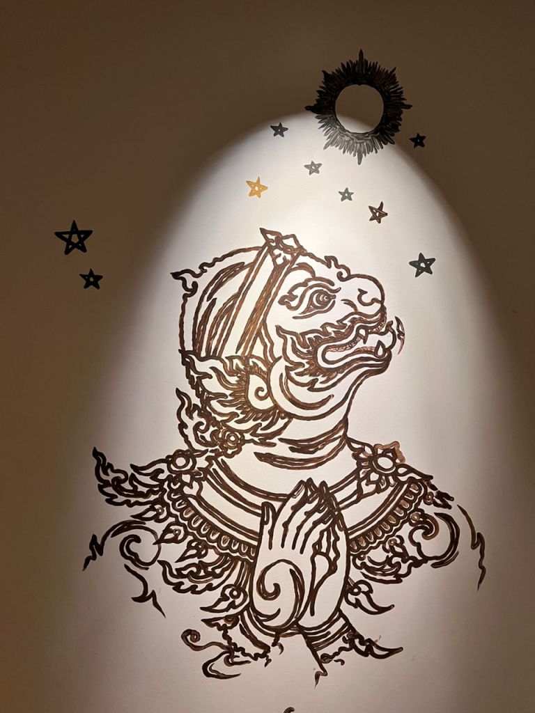 You can see murals of Hanuman in the room and at the reception area and the fountain is surrounded by both the monkey and also the fish- Hanuman…