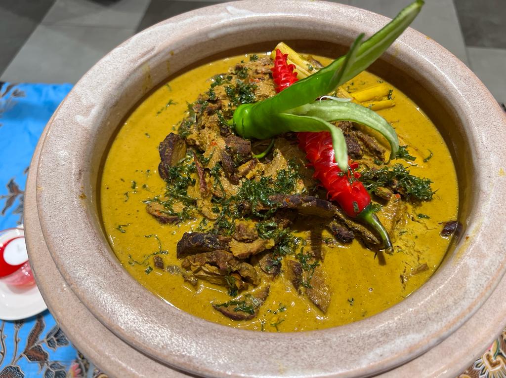 This season’s signature dish is presented by Chef Arih bin Ahmad, harking back to fond memories of his mother’s cooking — Daging bakar masak lemak, a Negeri Sembilan classic. Spiced with serai, cili padi and kunyit, the smoked meat (‘daging salai’) is then paired with creamy santan and belimbing besi, a combination that melds spicy, rich and smoky flavors, a traditional dish that whets the appetite.