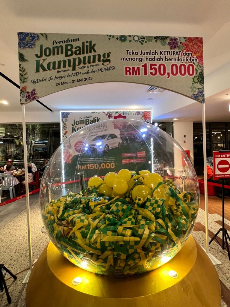 This contest is opened to all ATM MyDebit cardholders with minimum spending of RM50 at all SOGO stores and /or SOGO Foodgarden in SOGO Kuala Lumpur. All you need to do is count the number of ketupat in the giant transparent ball at any SOGO stores and attach a receipt to your contest form