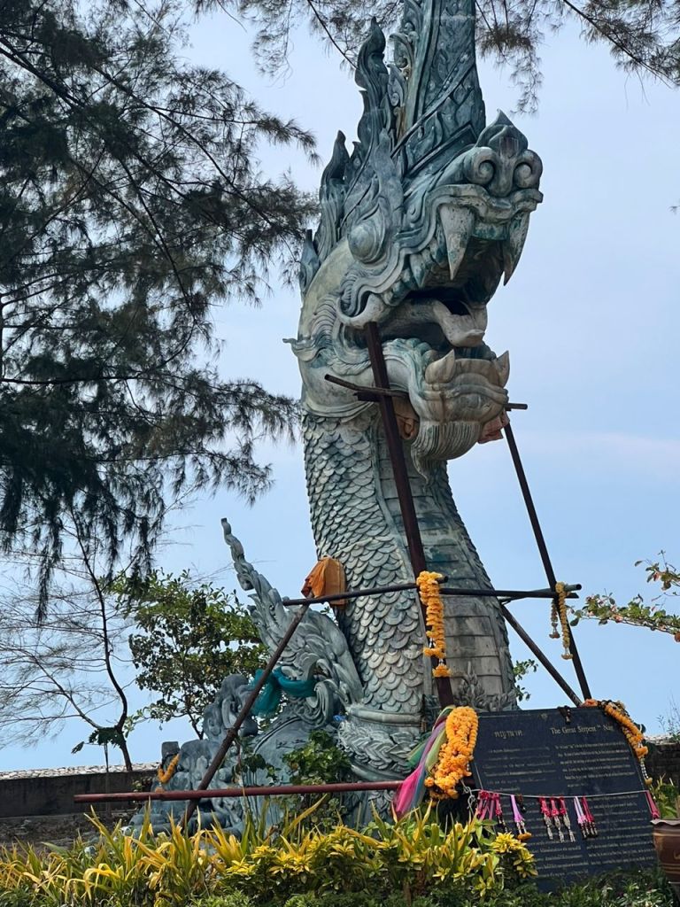 On the other end of the beach, you will come to a quieter section of the beach with casuarina trees where you can find the head of a naga serpent and also the statue of Prince Chumphon, father of the modern Thai Navy….