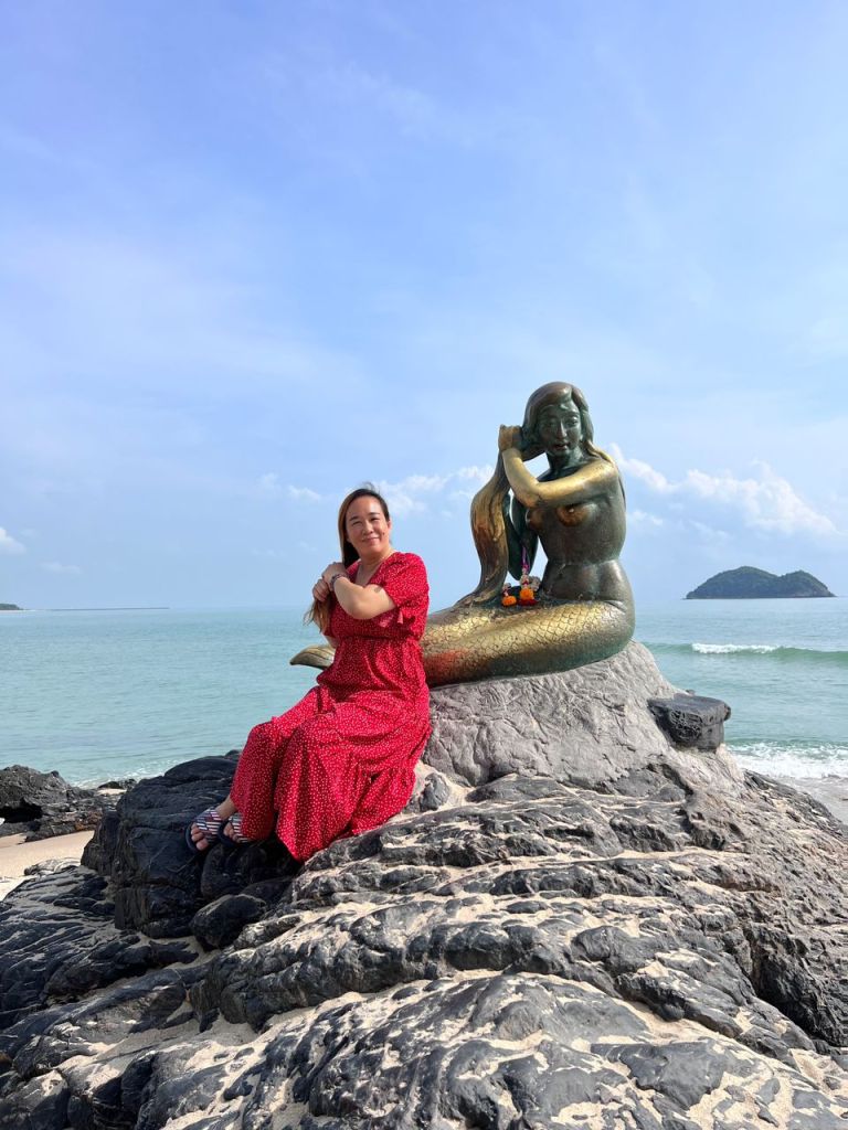 Samila Beach is famous for its mermaid statue, supposedly modelled after a goddess called Mae Thoranee who squeezed the water from her hair to wash away the Demon God Mara and his army who were trying to break the Lord Buddha’s concentration and stop him attaining enlightenment.