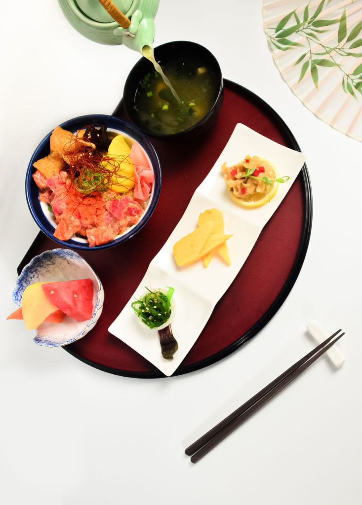 Donburi sets are basically Japanese “rice-bowl” dishes consisting of fish, chicken, beef, vegetables or other ingredients served over a bed of rice. Chef Azmi Amran heading the Midori Kitchen has prepared attractive and delicious sets of Donburi complete in a set served with 3 condiments, Miso Soup and Fruit of the Day.