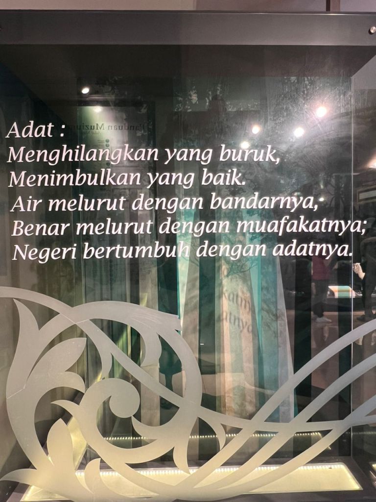 Housed in a four-story building, with a giant replica of a Malay headdress at the top of its entrance, the Customs Museum / Muzium Adat consists of four galleries which are: Introduction of custom, Life cycle, Intellectual tradition, government and power and Pepatih customs on 4 levels.