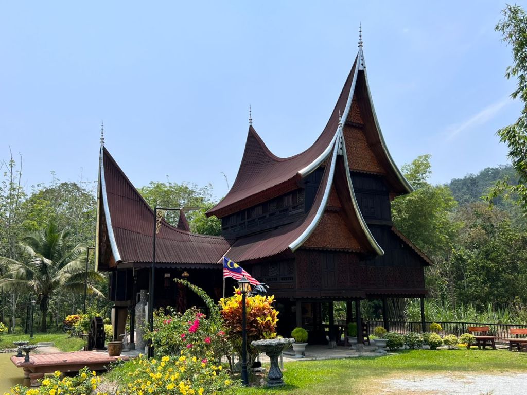 This traditional wooden house was built using quality wood minus any nails following authentic, traditional Minangkabau architecture and was originally located at Gunung Pasir, Sri Menanti… it was then purchased by a Tan Sri and the whole house relocated to Kampung Gagu, Kuala Klawang, completed with a gorgeous pond with a family of ducks….