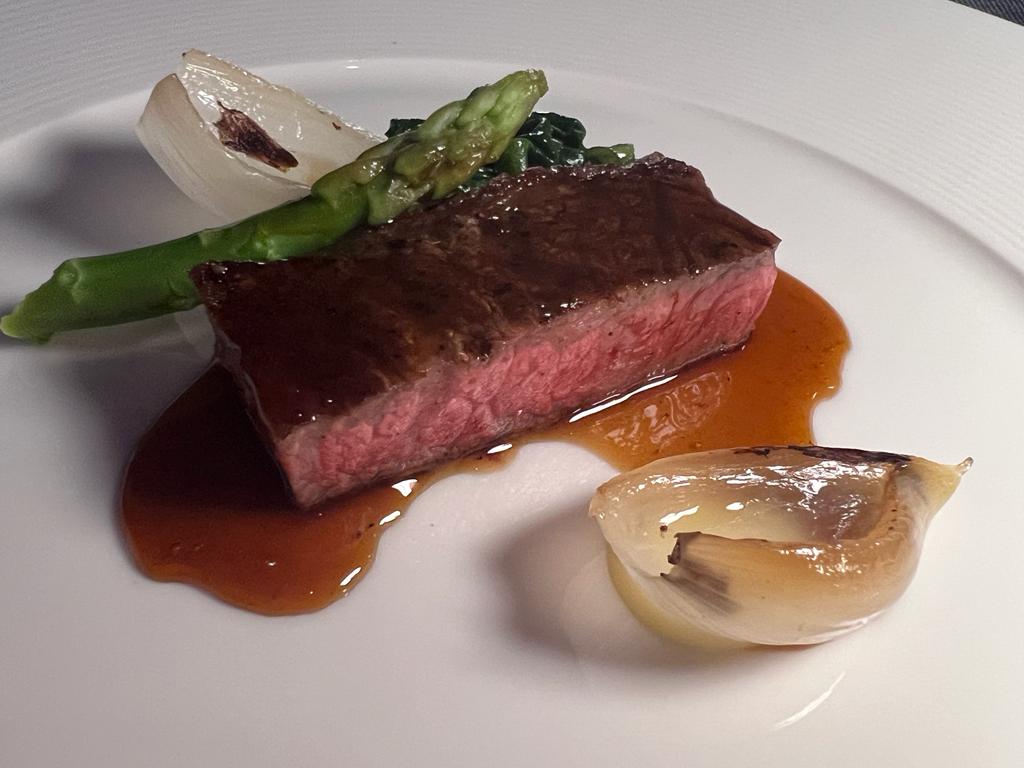 Guests can select from kingfish, lamb or an upgrade of RM 128 for a 120 gram Miyazaki Wagyu Sirloin A5 with glazed shallots, porcini oil, beef jus and seasonal vegetables.