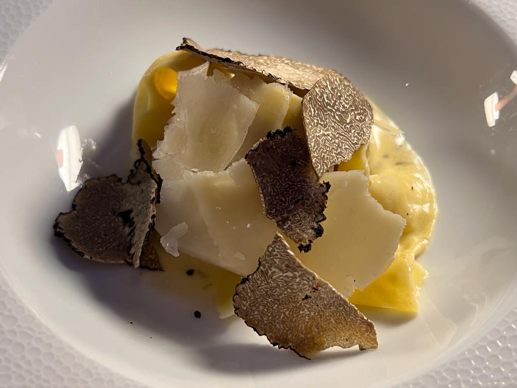 Chanterelle mushrooms are served in white wine cream with parsley and almond flakes, with roasted parsnips further accentuating the earthiness of this portion of the menu before the house-made pappardelle with 32-month Parmigiano-Reggiano and truffle.