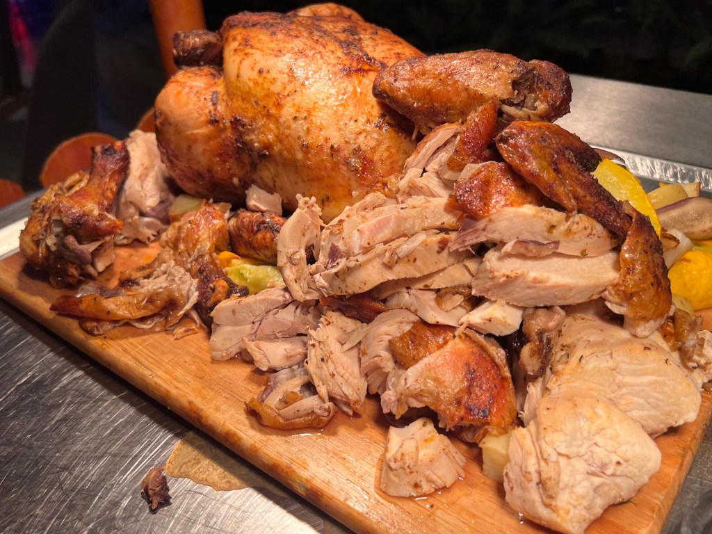Alternatively, a Parmesan Wheel is set nearby for diners to toss their own Caesar Salad.