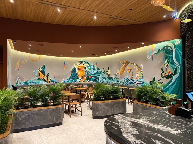 Amidst the comforting aroma of extraordinarily crafted coffee, Starbucks’ design philosophy is especially evident in its Starbucks ReserveTM stores, which features an enticingly warm interior and eye-catching art pieces that creates a welcoming atmosphere for all.