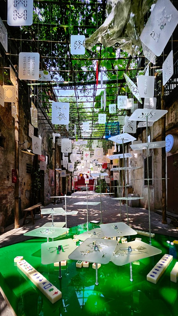Collaborating with local artists based in Johor Bahru, Wong Jia Min, and Lee Chaer Shean from plus + plus, the duo is renowned for their creative contributions in architecture. The pair presents the centerpiece – a Mahjong game set in the heart of the cul-de-sac surrounded by the silhouette of a dragon traversing above.”