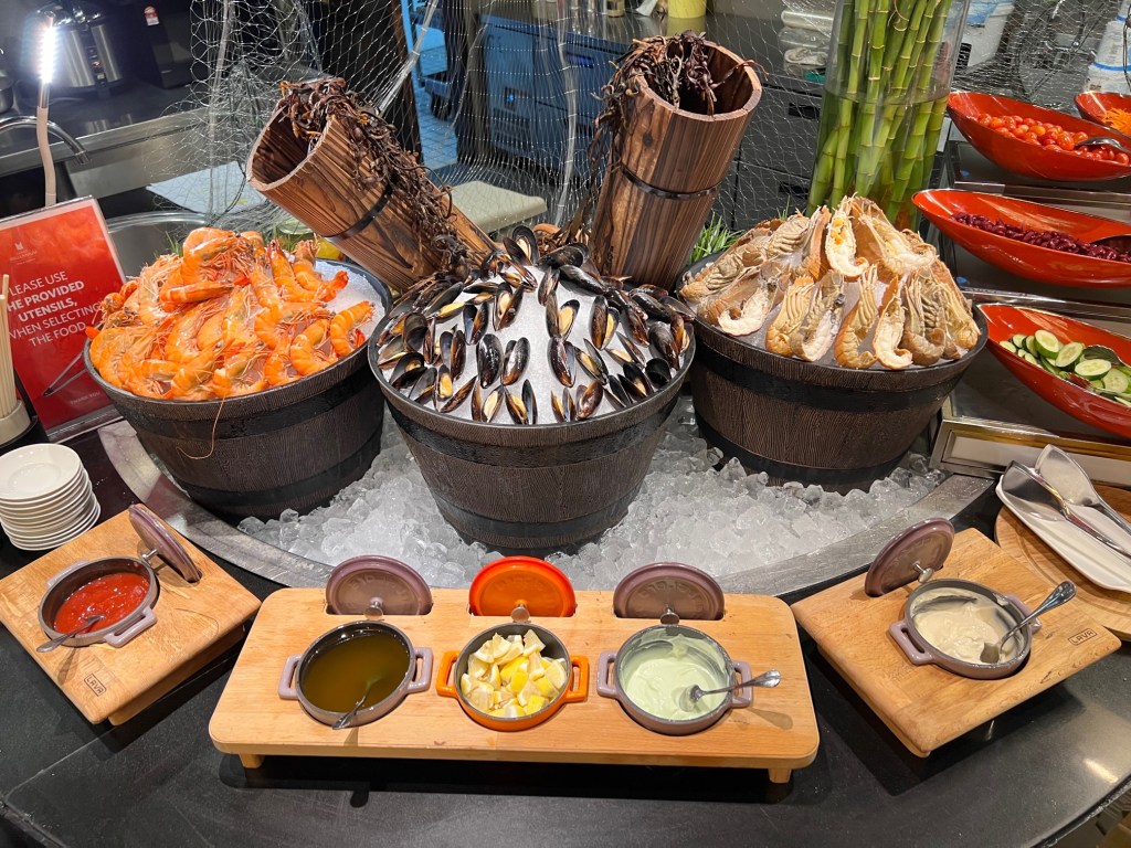 Enriching the buffet spread are the International offerings where diners can explore the Shawarma Counter, Seafood on Ice, the Japanese section serving Assorted Sushi, Maki, Nigiri, Individual Cold Soba, Chawan Mushi and Takoyaki. For noodle lovers, the Noodle Station offers the option choosing your favourite noodle prepared with an accompaniment of condiments.