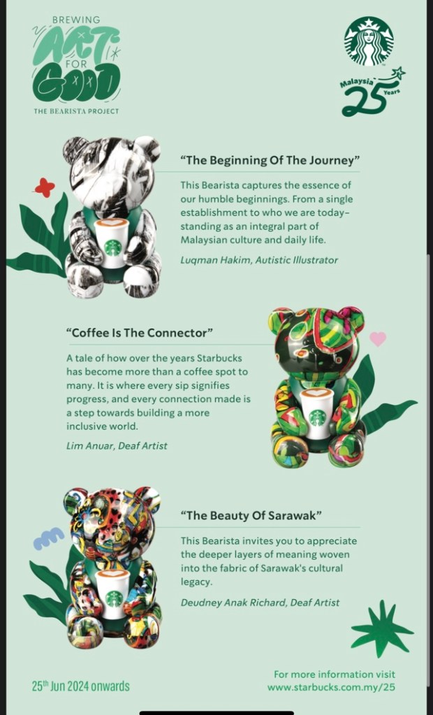 Starbucks Malaysia unveiled its latest campaign, “Starbucks Brewing Art for Good: The Bearista Project,” in collaboration with talented Malaysia artists, including Deaf and Autistic artists, and creative art students.