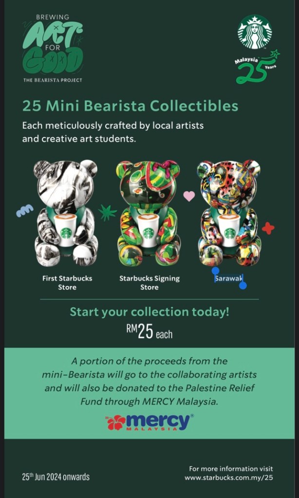 To celebrate its 25th anniversary, Starbucks Malaysia has also launched an exclusive webpage, served as a one-stop-center for all their anniversary activities and offerings including the Brewing Art For Good: The Bearista Project, artists’ profiles and video interviews, special merchandise, and more! Visit http://www.starbucks.com.my/25 for the latest updates.