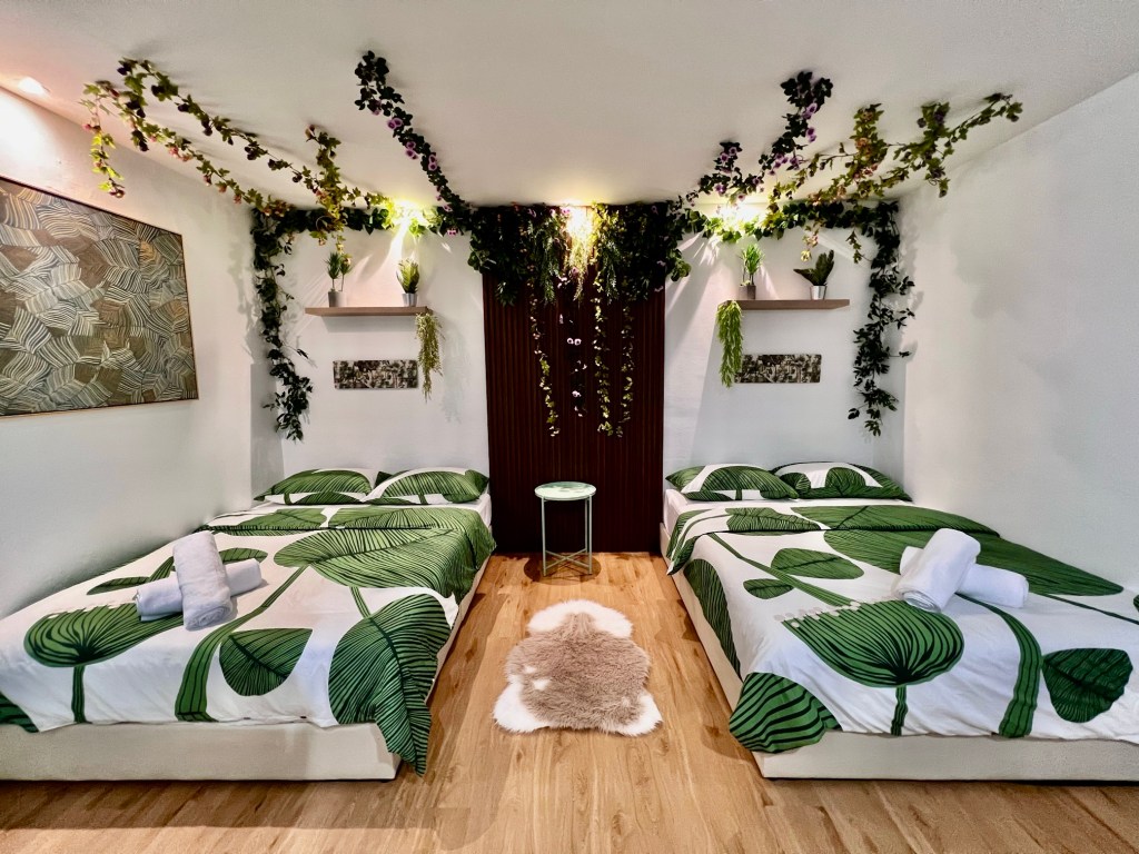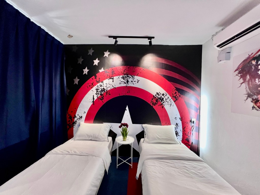 The beautiful themed rooms (Hello Kitty, Captain America, etc) comes with smart tv, and guests can access netflix and youtube