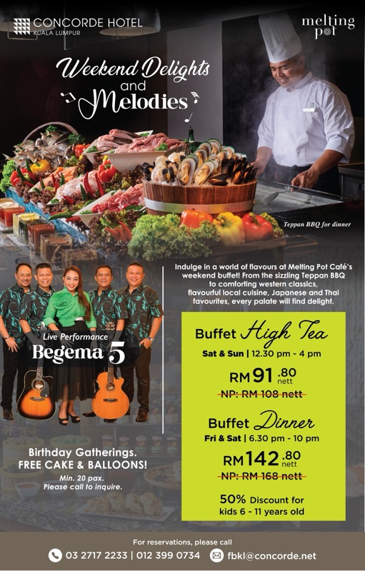 Melting Pot Cafe at Concorde Hotel KL is thrilled to introduce their brand-new buffet menu features with delectable dishes and a diverse selection of culinary creations that are sure to delight.
