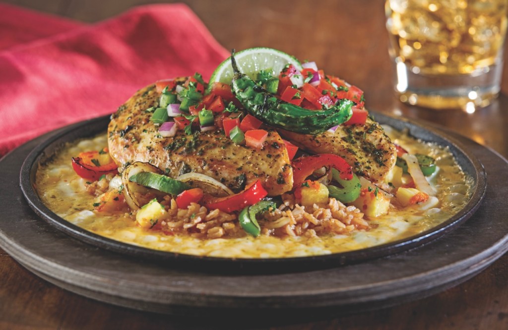 Sizzling Chicken Mexicali (RM39.90): Chipotle-marinated chicken sautéed over melted cheeses, Spanish rice, peppers, onions, pico de gallo, roasted jalapeño, and cilantro.