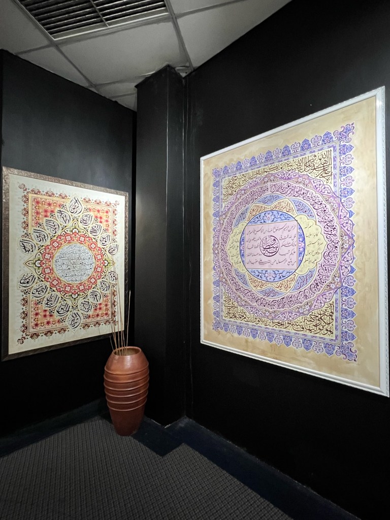 We then departed to Shah Alam’s Selangor International Islamic Arts Complex, where we got to learn and try our hand on some Jawi Calligraphy writing and admire the beautiful Jawi scripts which were turned to art pieces too…