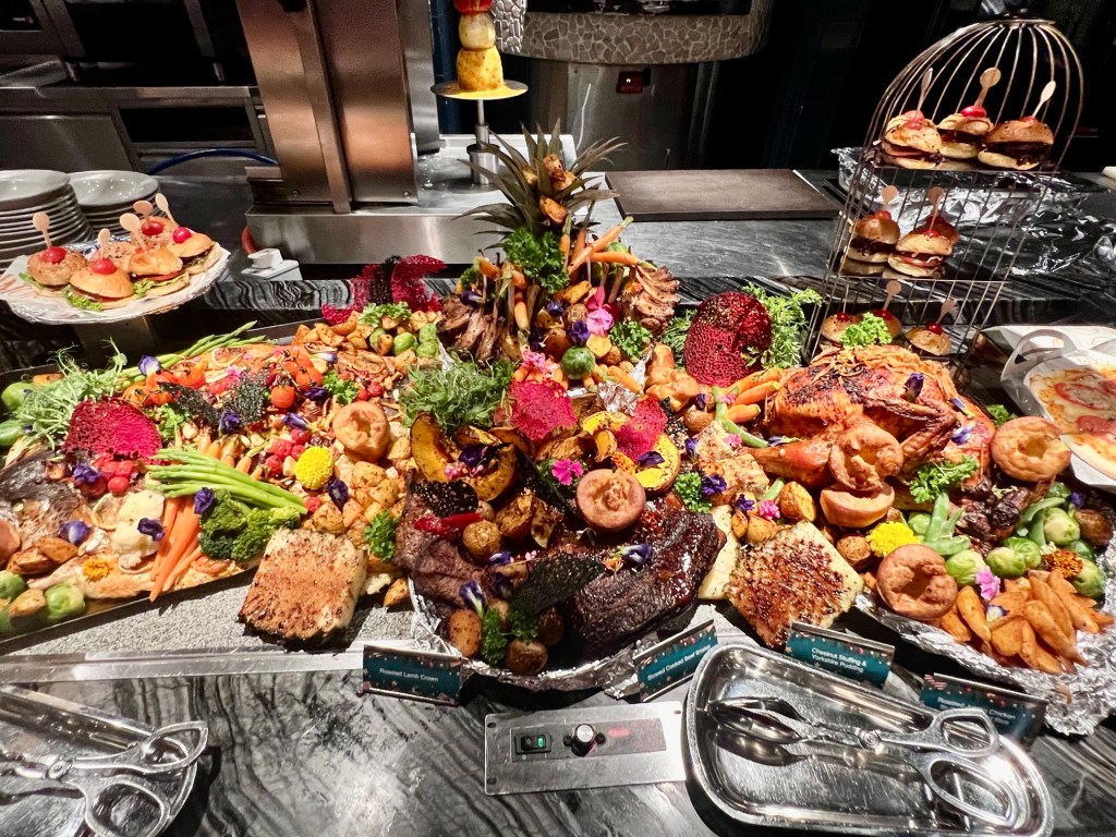 For an enchanting evening, the Christmas Eve and Christmas Day Buffet Dinner features a luxurious feast of Whole Lamb Briyani, Roasted Lamb Crown, Roasted Jumbo Chicken, Slow Cooked Beef Brisket, Baked Norwegian Salmon, Lamb Ossobuco, and BBQ Beef Short Rib. Each dish has been meticulously prepared to deliver a truly memorable holiday dining experience.
