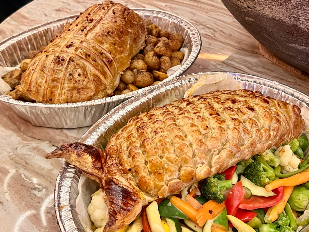 Treat yourself to some festive takeaway options: a luxurious Wagyu Beef Wellington with roasted baby potatoes, vegetables, and black pepper sauce for RM998 nett, or a delicious Salmon Wellington with roasted baby potatoes, vegetables, and Beurre Blanc sauce for RM598 nett. Preorder 3 days in advance to enjoy these gourmet holiday delights at home.