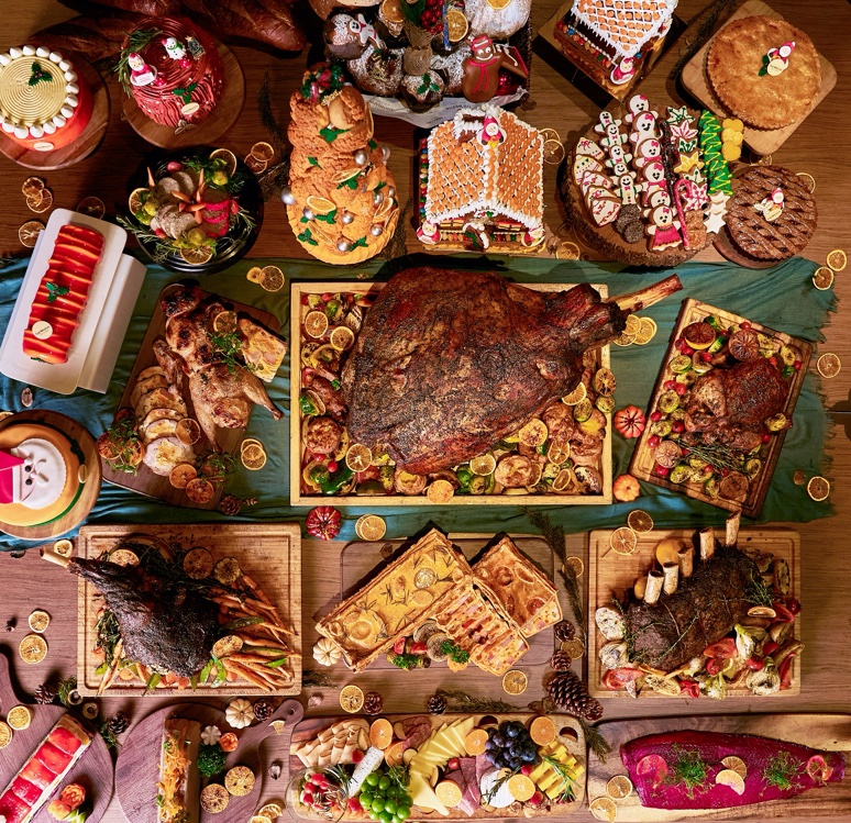 Rounding up the feast are Yuletide desserts from the pastry chefs: Clementine Orange Chocolate Yule Log, Orange and Berries Cheesecake, Carrot Pineapple Cake, Apricot English Fruit Cake, Buche Exotic Mango Passion Log Cake, Tangerine Panna Cotta, Orange Spiced Crème Brulee, Apricot Macaron Tower, Orange Gold Choux Craquelin Tower, Lemon Madeleine Tower, Peace Spiced Popsicle Cake, Christmas Pudding, Minced Pie, and more sweet treats to satiate the festive appetite.