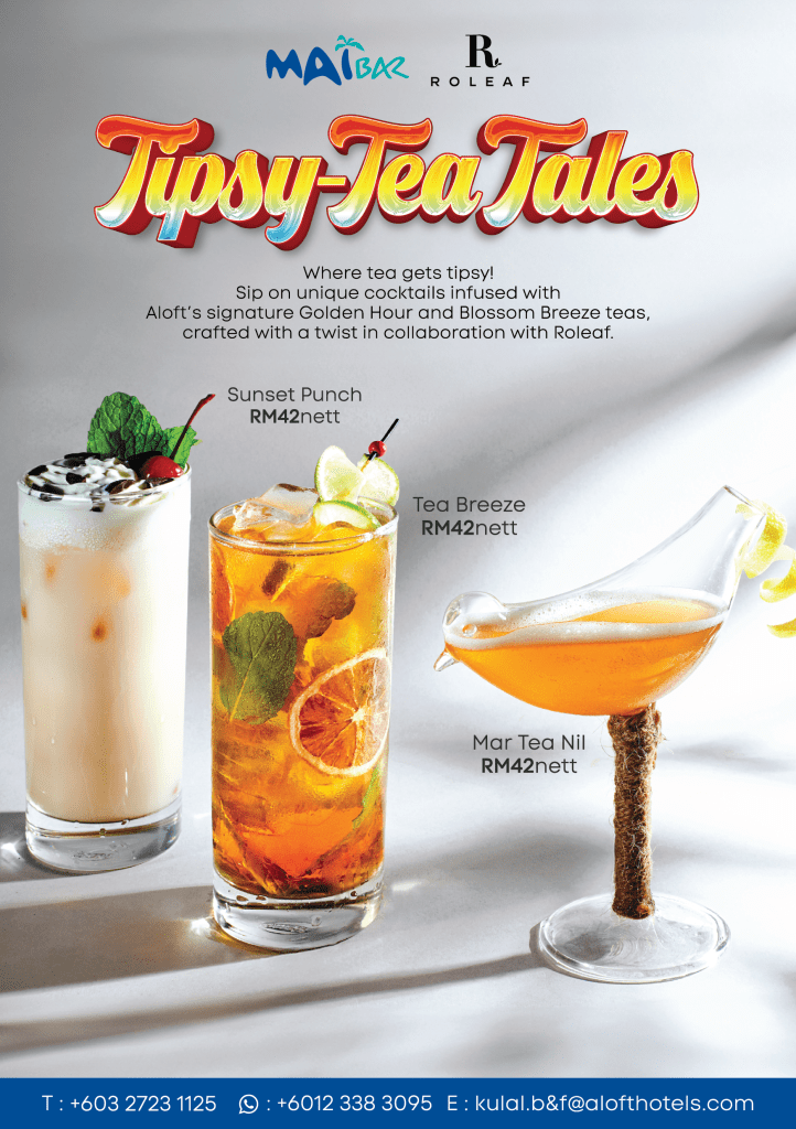 Available from 1 January to 31 March 2025, guests can sip on these tea-rrific cocktails at RM42nett per glass. For reservations and inquiries, please reach out via WhatsApp at +6012 338 3095, call +603 2723 1125, or email kulal.b&f@alofthotels.com.