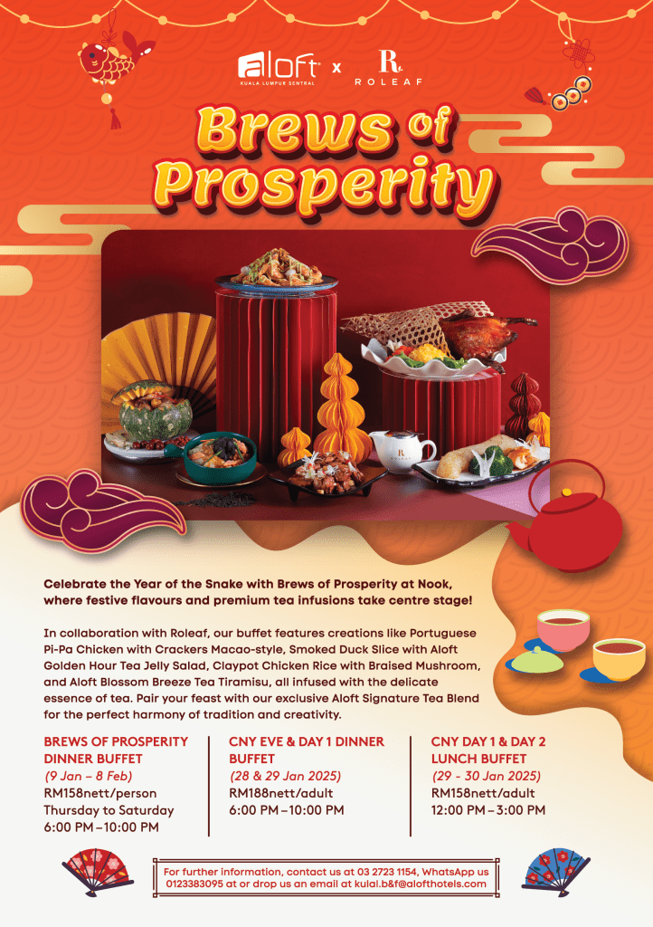 - Brews of Prosperity Dinner Buffet – available from 9 January to 8 February 2025, 6:00PM – 10:00PM, priced at RM158nett per person